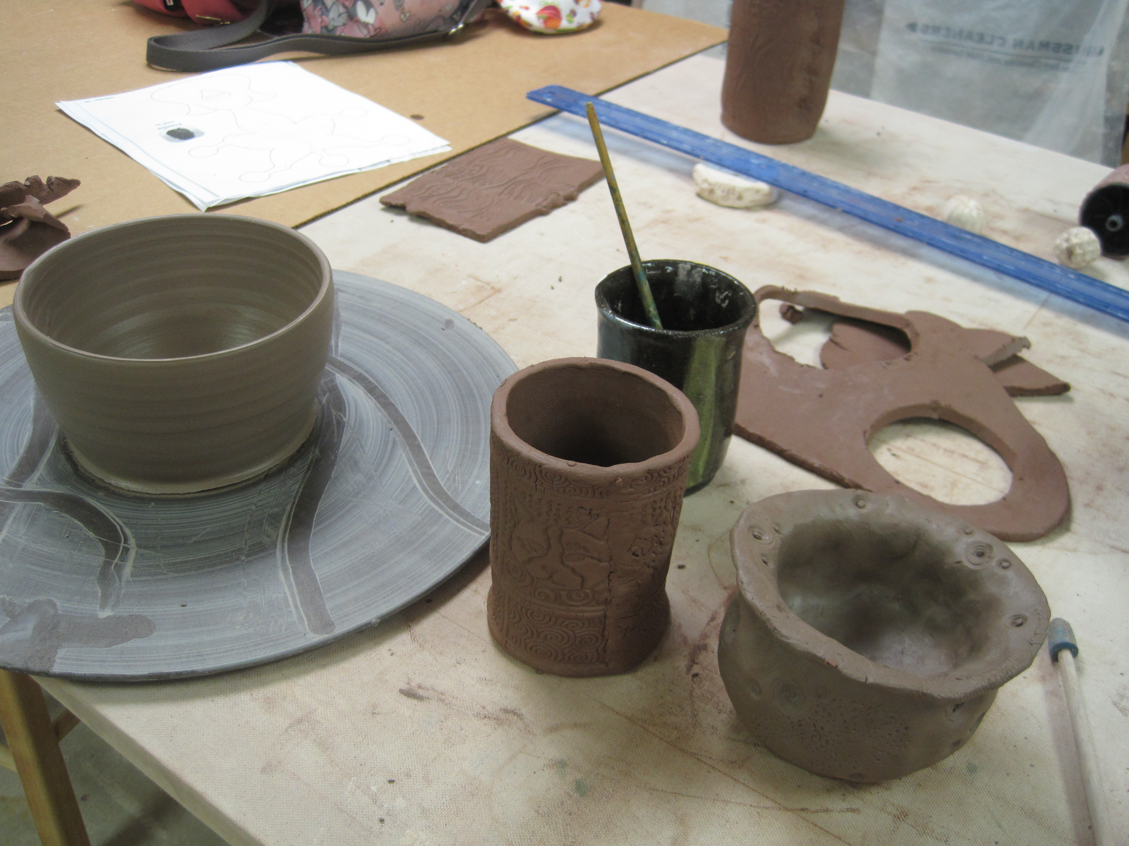 猫の湯飲み(マグの取っ手取ってスリムにしたのです)と、無地のボウル、あとよくわからない花瓶(?)を作りました。